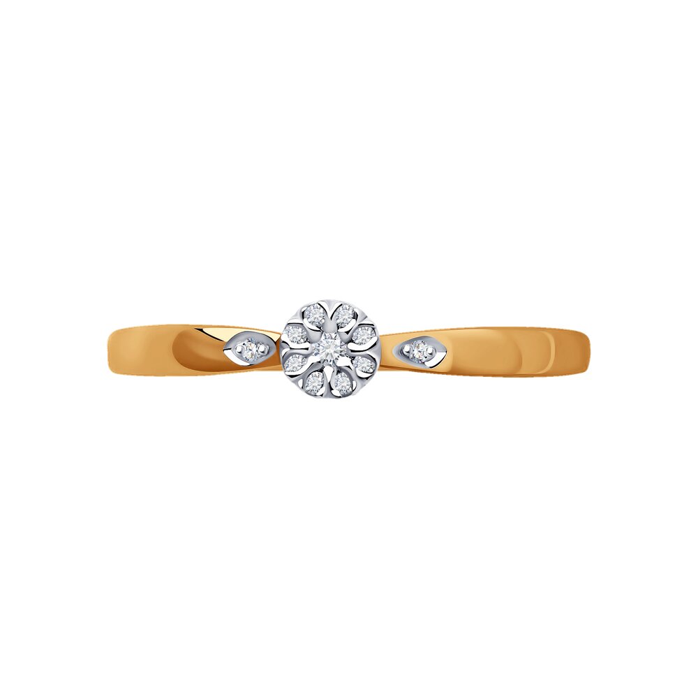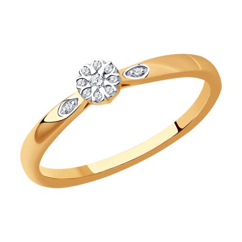 Изумительное кольцо из красного золота 585 пробы, украшенное 11 бриллиантами в оформлении изящных вставок из белого золота. Такое украшение подчеркнет очарование и индивидуальность образа своей владелицы, и станет изысканным дополнением к классическому и праздничному стилю. Купите изысканное кольцо выгодно в магазинах Мир Золота.