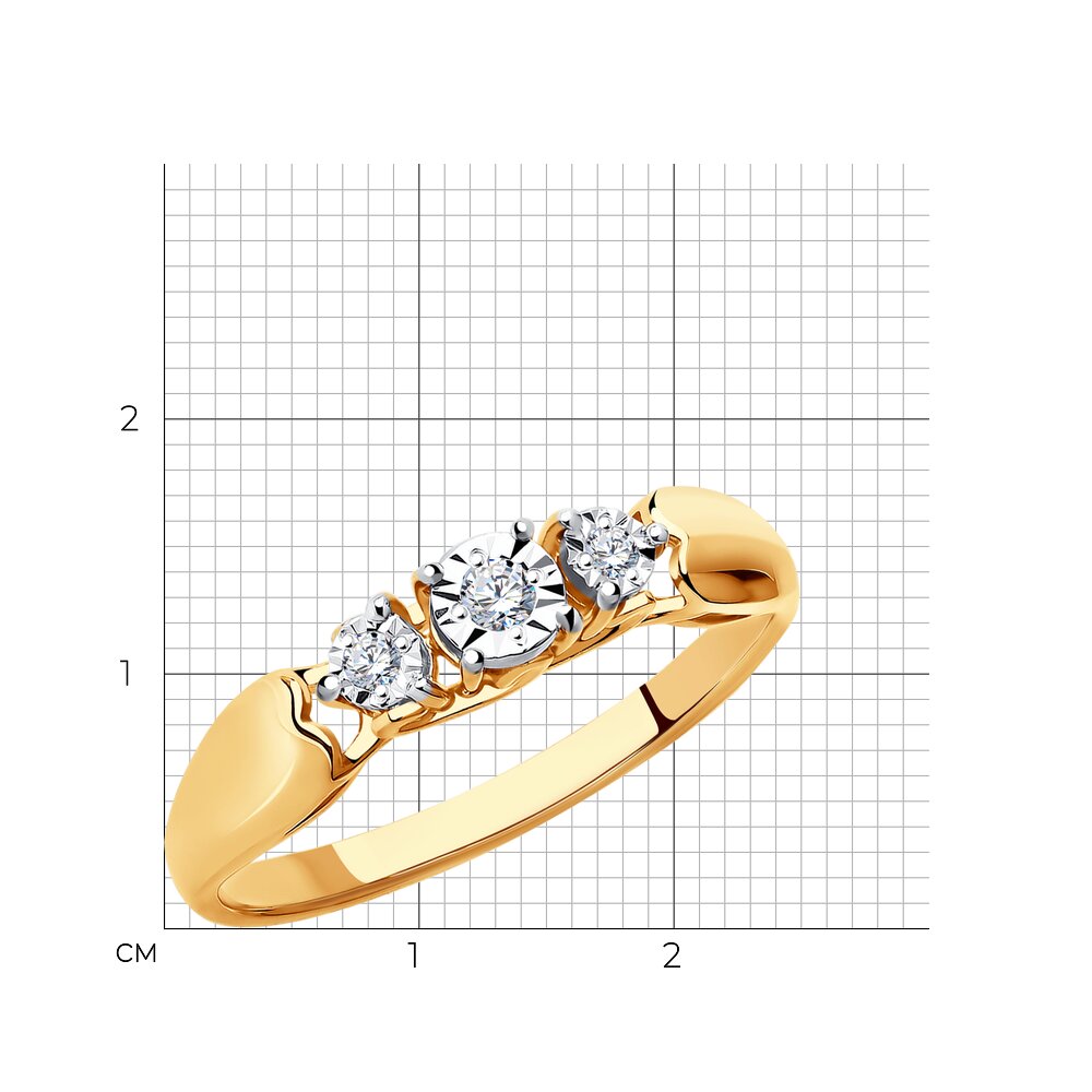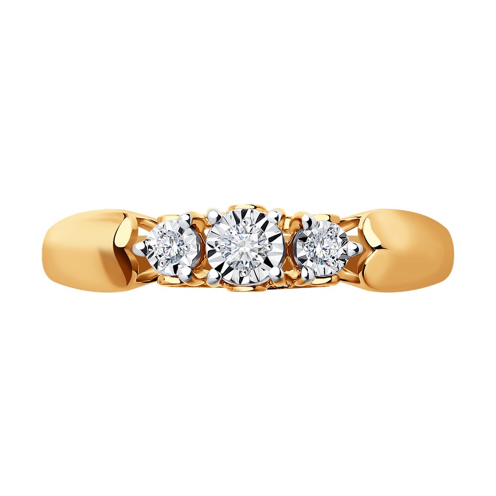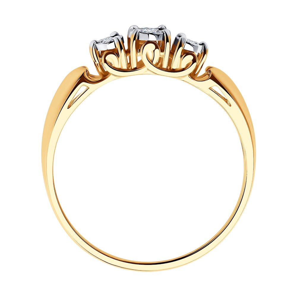 Оригинальное кольцо из красного золота 585 пробы с тремя бриллиантами в стиле неоклассика подчеркнёт индивидуальность образа. Бриллианты классической формы огранки выгодно подчёркнуты элементами из белого золота. Объединяя классику и тренды, украшение становится впечатляющим дополнением повседневных образов и нарядов. Купите элегантное кольцо выгодно в магазинах Мир Золота.