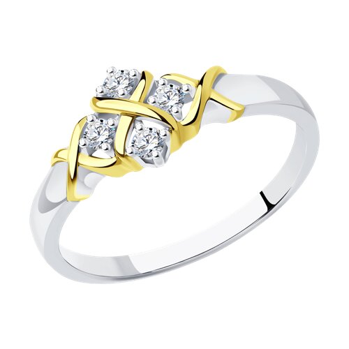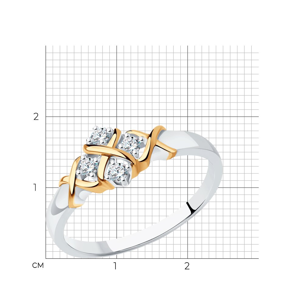 Привлекательное кольцо из белого золота 585 пробы с бриллиантами. Кольцо с изящным декором из позолоченных элементов дополняют четыре драгоценных бриллианта прозрачного цвета. Украшение станет прекрасным дополнением и изюминкой женственного образа. Приобретайте прекрасное кольцо по выгодным ценам в магазинах Мир Золота.