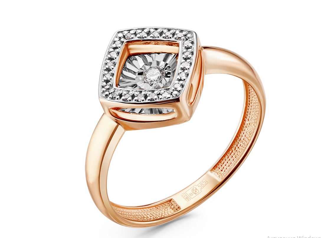 Стильное кольцо из красного золота 585 пробы с выразительной вставкой в форме ромба с сияющими бриллиантами. Вставки из белого золота выгодно подчеркивают природную красоту и кристальный блеск камней, алмазная грань создает эффект дополнительного сияния. Элегантное украшение подчеркнет индивидуальность и изысканность неотразимого женственного образа. Приобретайте кольцо по выгодным ценам в магазинах Мир Золота.