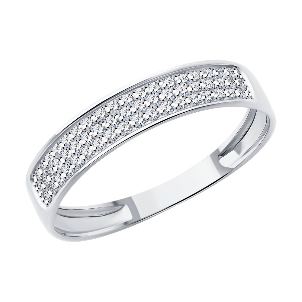Кольцо из белого золота 585 пробы украшено россыпью натуральных бриллиантов. Кольцо с изумительным бриллиантовым блеском смотрится сдержанно и благородно, и станет достойным дополнением к выбранному образу. Безупречное украшение идеально подойдет для тех, кто хочет выглядеть элегантно и стильно в любой ситуации. Приобретайте ювелирное кольцо по выгодным ценам в магазинах Мир Золота.