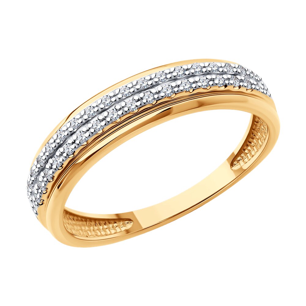 Элегантное нежное кольцо из красного золота 585 пробы с двойной дорожкой из драгоценных бриллиантов будет идеальным вариантом повседневного украшения. Универсальный классический дизайн гармонично дополнит любой выбранный образ и подчеркнет его изысканность. Приобретайте ювелирное украшение для себя или в подарок по привлекательной цене в магазинах Мир Золота.