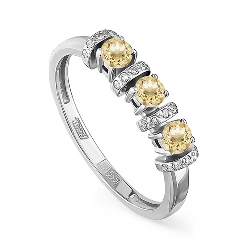 Стильный дизайн женского кольца из белого золота 585 пробы с эффектными цветными и прозрачными бриллиантами привлекает к себе внимание. Теплый блеск бриллиантов цвета шампань, дополненный кристальным сиянием дорожек с прозрачными камнями, завораживает взгляд, и станет изысканным акцентом элегантного женственного образа. Приобретайте великолепное украшение в подарок по выгодным ценам в магазинах Мир Золота.