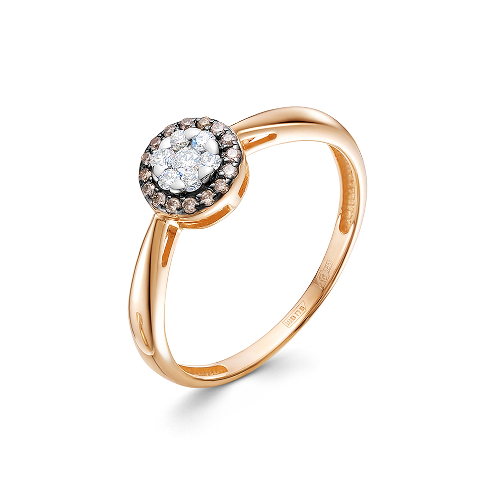 Классическое кольцо из красного золота 585 пробы с эффектной сияющей вставкой с прозрачными и коньячными бриллиантами. Элегантное украшение с завораживающим блеском драгоценных камней очень женственно и благородно смотрится, и станет главным акцентом неповторимого вечернего образа. Приобретайте ювелирное украшение в подарок по выгодным ценам в магазинах Мир Золота.