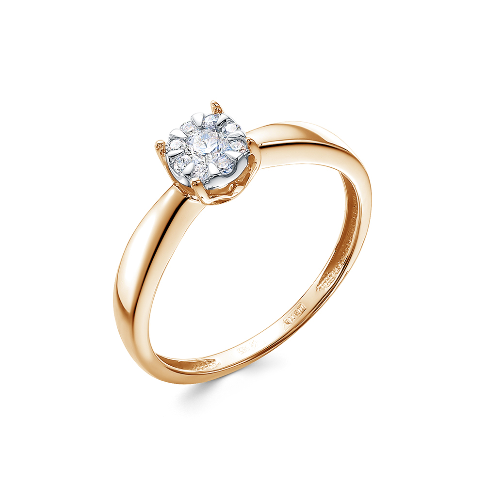 Очаровательное кольцо из красного золота 585 пробы с сияющей вставкой из прозрачных бриллиантов сделает образ владелицы более ярким и привлекательным. Изысканное украшение порадует своим изящным дизайном и кристальным блеском камней, и станет идеальным подарком, подчеркивающим красоту и женственность владелицы. Приобретайте ювелирное украшение по выгодной цене в магазинах Мир Золота.