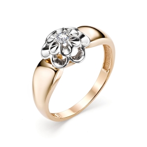 Очаровательное кольцо привлекательного дизайна из красного золота 585 пробы декорировано изящной вставкой с драгоценным бриллиантом. Флористический стиль украшения позволит создать нежный романтичный образ, и подчеркнет красоту и женственность обладательницы. Приобретайте прекрасное кольцо для себя или в подарок по выгодным ценам в магазинах Мир Золота.