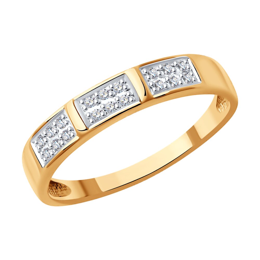 Элегантное кольцо из красного золота 585 пробы декорировано вставками из белого золота с сияющими бриллиантами. Кольцо с изумительным бриллиантовым блеском смотрится сдержанно и благородно, и станет достойным дополнением к любому наряду. Украшение идеально подходит для тех, кто хочет выглядеть элегантно и стильно в любой ситуации. Приобретайте великолепное кольцо по выгодным ценам в магазинах Мир Золота.