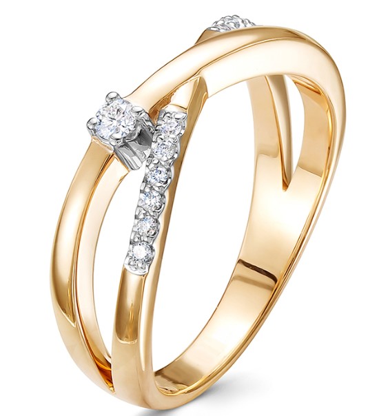 Кольцо из красного золота 585 пробы с натуральными бриллиантами смотрится стильно и элегантно. Благородный блеск золота выгодно подчеркивает кристальное сияние драгоценных камней. Актуальный дизайн гармонично дополнит современные образы владелицы, и отлично впишется как в повседневный, так и вечерний гардероб. Приобретайте кольцо по выгодной цене в магазинах Мир Золота.
