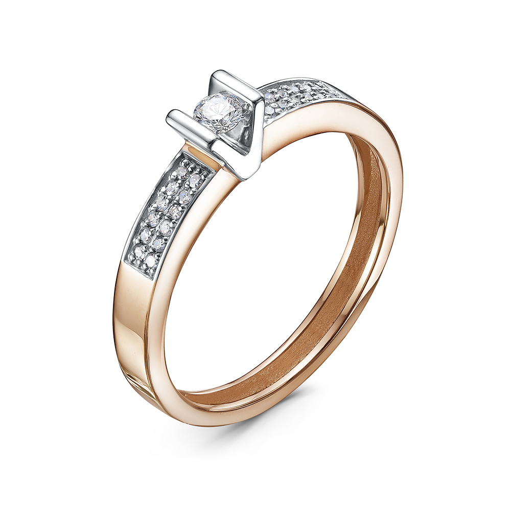 Привлекательное кольцо с натуральными бриллиантами выполнено из красного золота 585 пробы. Эффектная центральная вставка из белого золота акцентирует драгоценный бриллиант, придавая объем и подчеркивая его неотразимую красоту и сияющую прозрачность. Элегантное украшение станет изюминкой женственного образа и достойным подарком по любому поводу. Покупайте кольцо по выгодной цене в магазинах Мир Золота.
