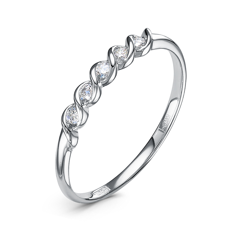 Изумительное кольцо из белого золота 585 пробы изящно декорировано дорожкой из драгоценных бриллиантов. Чистый кристальный блеск натуральных камней эффектно подчеркнут благородным сиянием золота. Утонченное украшение будет прекрасно смотреться и с повседневными, и с вечерними нарядами, и позволит вам легко создать свой идеальный образ. Покупайте кольцо по выгодной цене в магазинах Мир Золота.