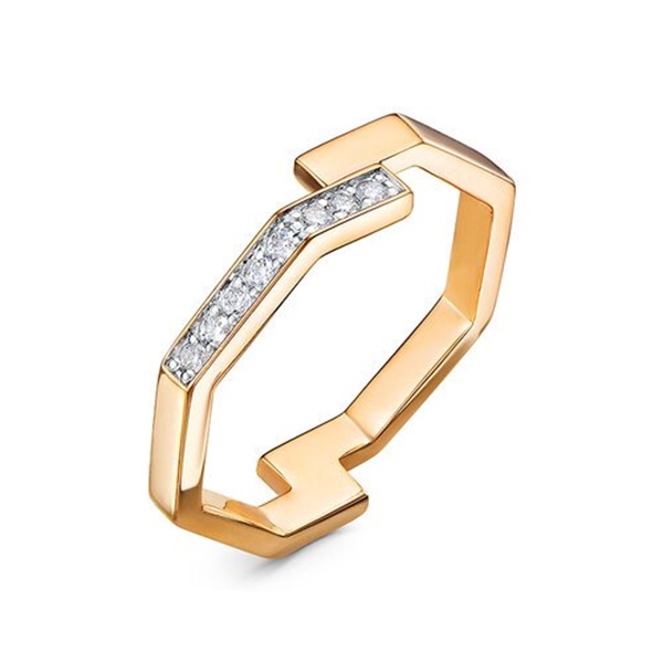Кольцо современного ювелирного дизайна с дорожкой сияющих бриллиантов выполнено из красного золота 585 пробы. Лаконичное, но вместе с тем стильное украшение с изысканным сиянием натуральных камней будет идеальным выбором для динамичных повседневных образов современной леди. Приобретайте актуальное ювелирное украшение по привлекательной цене в магазинах Мир Золота.