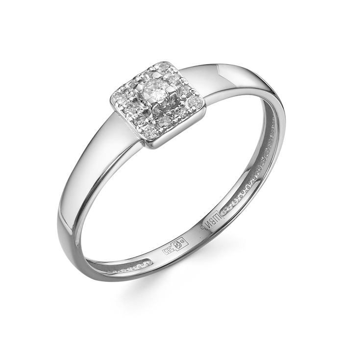 Кольцо из белого золота 585 пробы с натуральными бриллиантами подчеркнет красоту и женственность обладательницы. Сочетание холодного блеска золота и завораживающего сияния драгоценных камней сделает женский образ более изысканным и притягательным. Украшение элегантно смотрится, и великолепно дополнит повседневные и вечерние наряды. Приобретайте кольцо по выгодным ценам в магазинах Мир Золота.