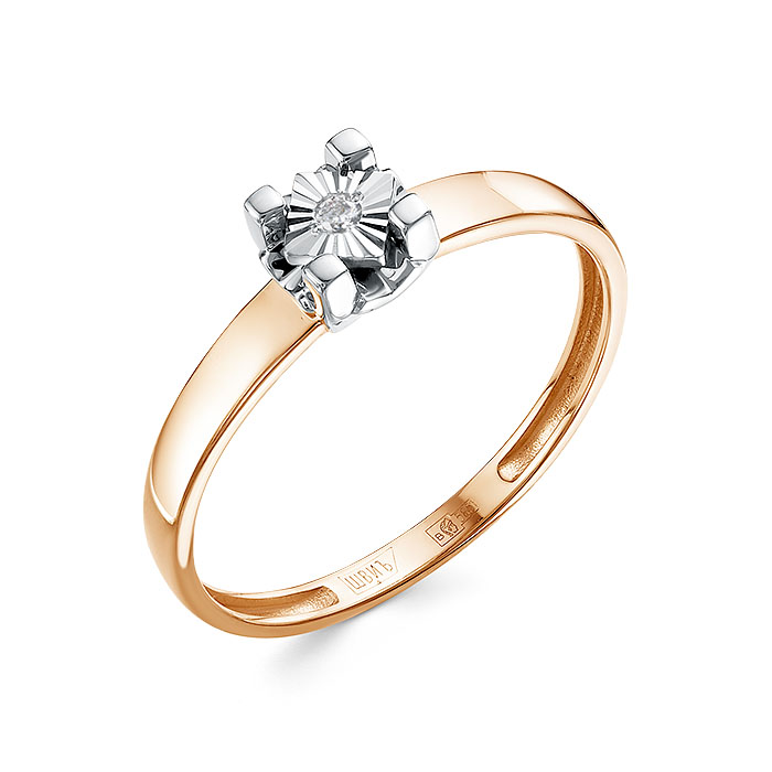 Изящное кольцо с натуральным бриллиантом выполнено из красного золота 585 пробы. Вставка из белого золота с алмазной гранью визуально увеличивает объем бриллианта и создает эффект дополнительного сияния. Утонченное украшение идеально подойдет под любой повседневный стиль, и станет приятным подарком, подчеркивающим красоту и очарование владелицы. Приобретайте кольцо по привлекательной цене в магазинах Мир Золота.