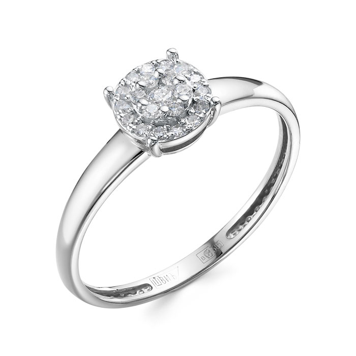 Изящное кольцо из белого золота 585 пробы украшено вставкой из сверкающих бриллиантов. Холодный оттенок золота выгодно подчеркивает чистое прозрачное сияние драгоценных камней, раскрывая их природную красоту и очарование. Утонченное украшение будет прекрасным подарком, и внесет изюминку в повседневный образ владелицы. Приобретайте кольцо по выгодным ценам в магазинах Мир Золота.
