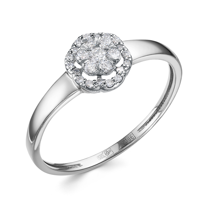 Привлекательное кольцо из белого золота 585 пробы с изящной композицией из драгоценных бриллиантов не оставит женщину равнодушной. Холодный оттенок золота эффектно подчеркивает завораживающий блеск драгоценных камней. Утонченное украшение очень женственно и очаровательно смотрится на руке, с этим нежным аксессуаром вы сможете легко создать свой идеальный образ. Приобретайте кольцо выгодно в магазинах Мир Золота.