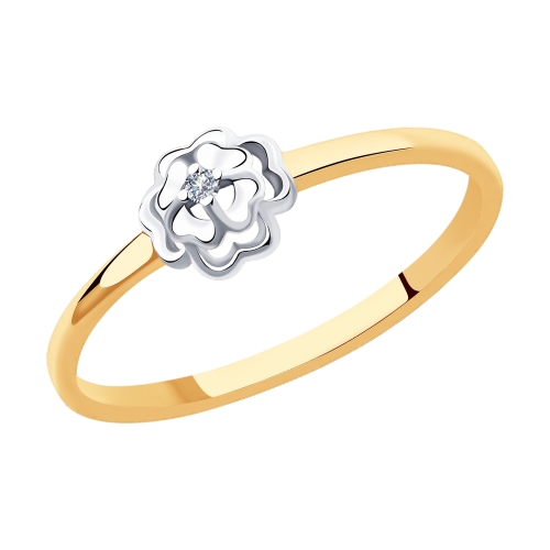 Очаровательное кольцо из красного золота 585 пробы с бриллиантом в современном стиле. Бриллиант выгодно подчеркнут элементами из белого золота в необычном дизайне. Объединяя классику и тренды, украшение становится впечатляющим дополнением повседневных образов. Приобретайте превосходное кольцо по выгодным ценам в магазинах Мир Золота.