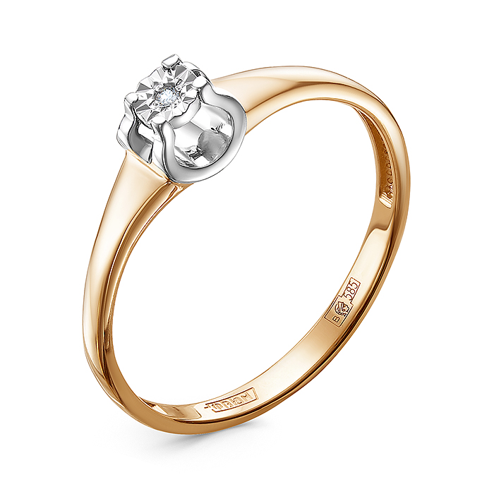 Очаровательное кольцо из красного золота 585 пробы с бриллиантом выполнено в классическом стиле. Вставка из белого золота гармонично дополняет бриллиант и подчеркивает его сияние. Идеальный вариант для подарка и помолвочного кольца. Это украшение будет превосходно смотреться в любом образе. Приобретайте кольцо по выгодным ценам в магазинах Мир Золота.