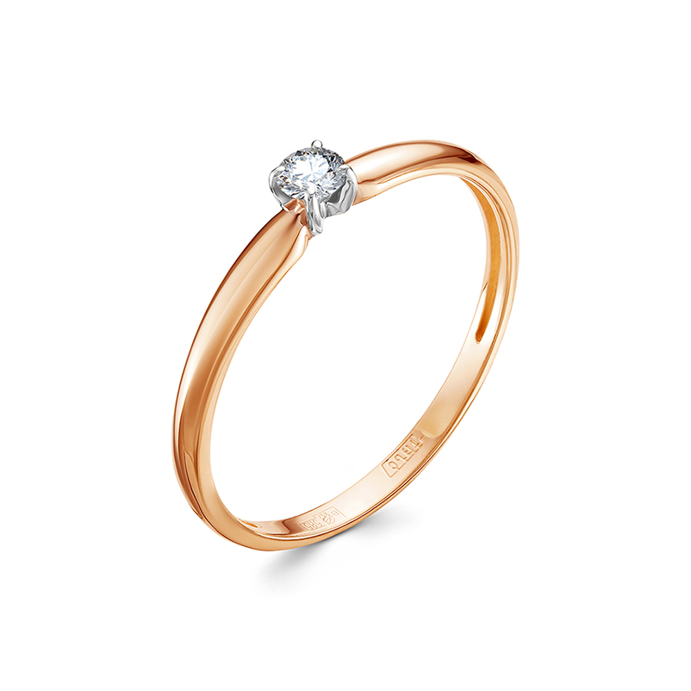 Утонченное нежное кольцо выполнено из красного золота 585 пробы и украшено великолепным бриллиантом. Помолвочное кольцо с сияющим бриллиантом - идеальный подарок и прекрасный выбор для важного события. Это украшение будет превосходно смотреться в любом образе. Приобретайте прекрасное кольцо по выгодным ценам в магазинах Мир Золота.