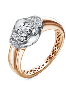 Роскошное кольцо из красного и белого золота 585 пробы с бриллиантами в оригинальном дизайне. Декоративная часть кольца изящно украшена искрящимися бриллиантами в обрамлении белого золота. Восхитительное кольцо изысканного дизайна никого не оставит равнодушным. Приобретайте очень красивое кольцо по выгодным ценам в магазинах Мир Золота.