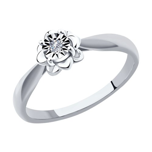 Чудесное кольцо из белого золота 585 пробы с одним бриллиантом. Кольцо декорировано очаровательной вставкой из белого золота в виде цветка с прозрачным сияющим бриллиантом. Изумительное украшение подходит для разных образов, выгодно подчеркнет женственность и элегантность. Приобретайте красивое кольцо по выгодным ценам в магазинах Мир Золота.