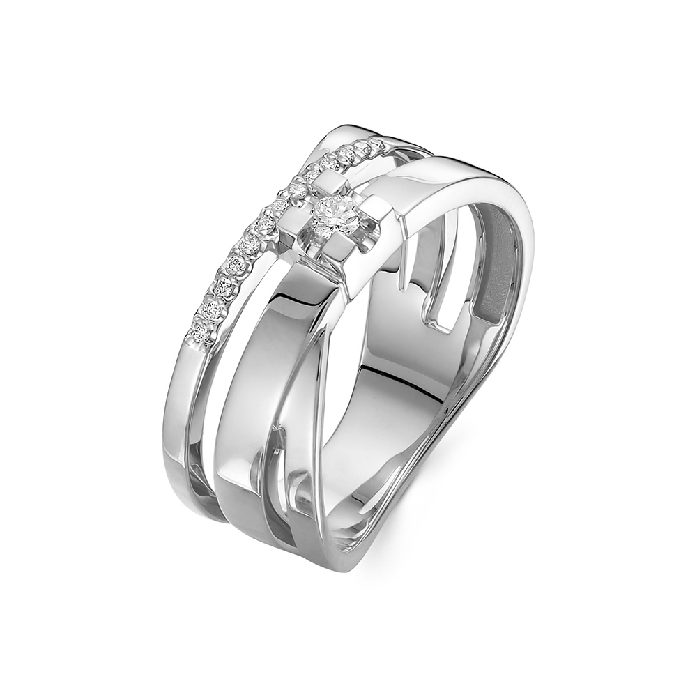 Роскошное кольцо с бриллиантами выполнено из белого лота 585 пробы в оригинальном современном дизайне. Кольцо декорировано центральным камнем и изящной дорожкой из 13 прозрачных бриллиантов. Кольцо интересного дизайна с сияющими бриллиантами станет выразительным акцентом вашего образа. Приобретайте украшение по выгодным ценам в магазинах Мир Золота.