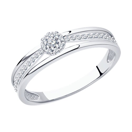 Очаровательное кольцо выполнено из белого золота 585 пробы и украшено бриллиантами. Сочетание белого золота и 33 сверкающих прозрачных камней придаст образу дополнительного блеска и шарма. Украшение эффектно дополнит как базовые повседневные, так и яркие праздничные наряды. Приобретайте восхитительное кольцо по выгодным ценам в магазинах Мир Золота.