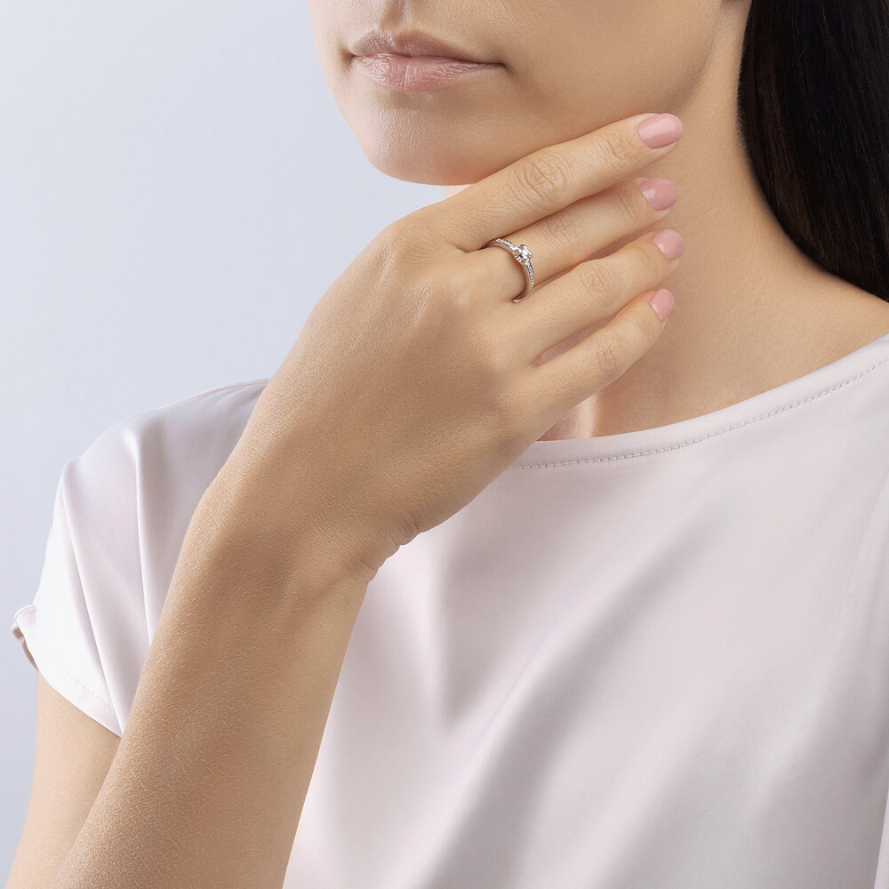 Превосходное кольцо из белого золота 585 пробы с прозрачными бриллиантами. Очень привлекательное сверкающее украшение дополняют 11 бриллиантов в виде центрального камня и бриллиантовых дорожек. Красивый аксессуар прекрасно сочетается с любым нарядом, а волшебный блеск драгоценных камней оставит незабываемые впечатления. Купите стильное украшение по выгодным ценам в магазинах Мир Золота.