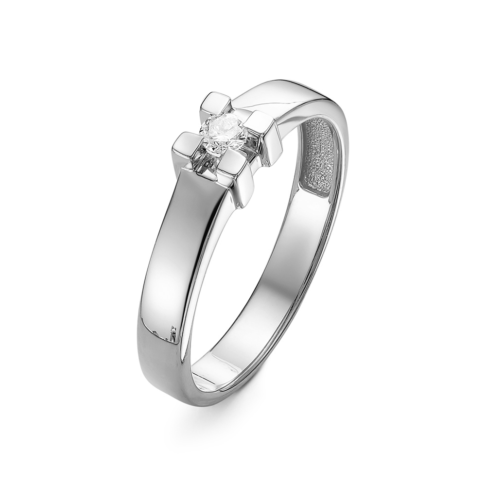 Классическое кольцо из белого золота 585 пробы с одним бриллиантом. Кольцо лаконичного дизайна декорировано элегантной бриллиантовой вставкой с прозрачным драгоценным камнем. Красивый аксессуар будет идеальным дополнением к повседневному и праздничному образу, а также добавит дополнительного шарма и очарования владелице. Приобретайте кольцо по выгодным ценам в магазинах Мир Золота.