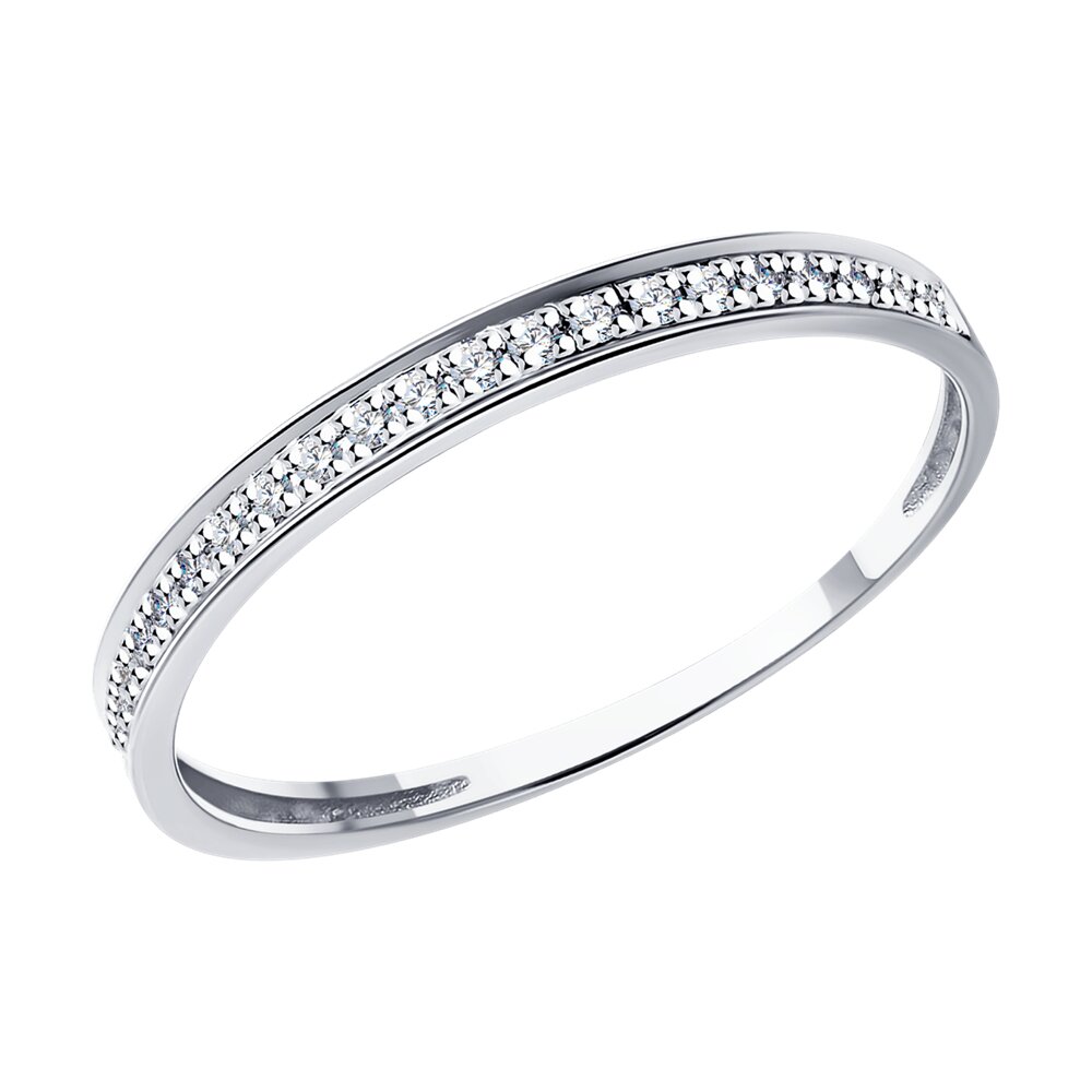 Утонченное кольцо из белого золота 585 пробы, декорированное дорожкой из 23-х природных бриллиантов, подчеркнет нежность и женственность владелицы. Лаконичный дизайн с изумительным сиянием драгоценных камней на фоне холодного оттенка золота привлекательно смотрится на руке, и отлично дополнит повседневные образы. Приобретайте кольцо по выгодным ценам в магазинах Мир Золота.