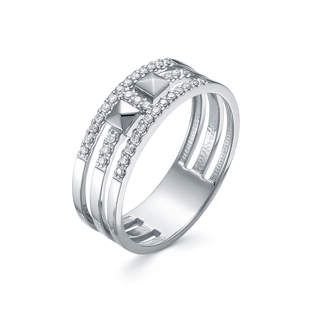 Великолепное кольцо стильного дизайна с выразительными дорожками из прозрачных бриллиантов выполнено из белого золота 585 пробы. Чистый кристальный блеск бриллиантов в эффектном сочетании с холодным оттенком золота приковывает внимание, и не оставит женщину равнодушной. Изысканное украшение элегантно и достойно смотрится, и отлично дополнит современные образы владелицы. Приобретайте кольцо по выгодным ценам в магазинах Мир Золота.