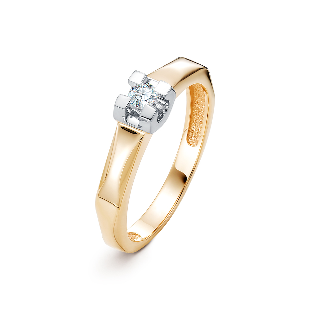 Стильное великолепное кольцо из красного золота 585 пробы с бриллиантом оформлено в современном дизайне. Вставка из белого золота элегантно дополняет бриллиант и придает ему дополнительный блеск. Кольцо будет идеально смотреться в составе классических и ярких образов. Приобретайте кольцо по выгодным ценам в магазинах Мир Золота.