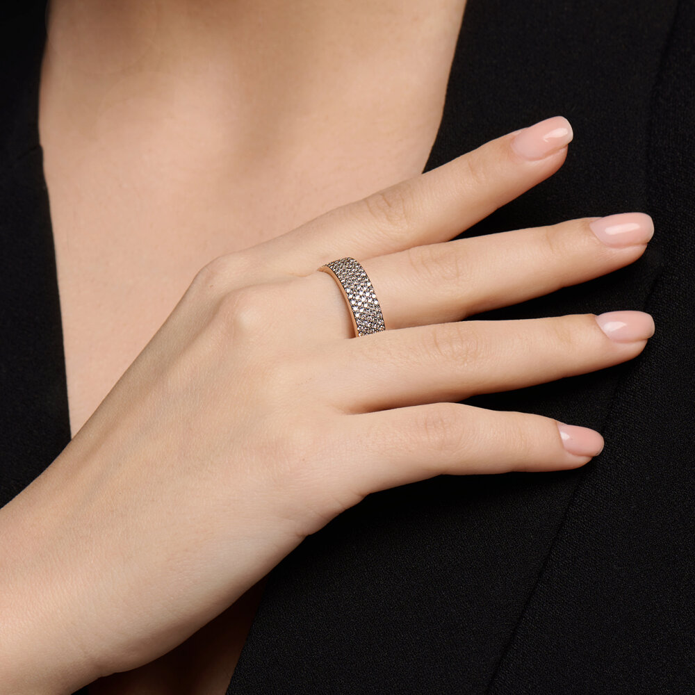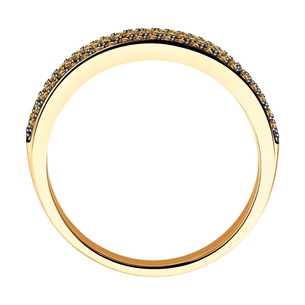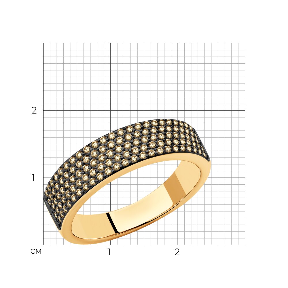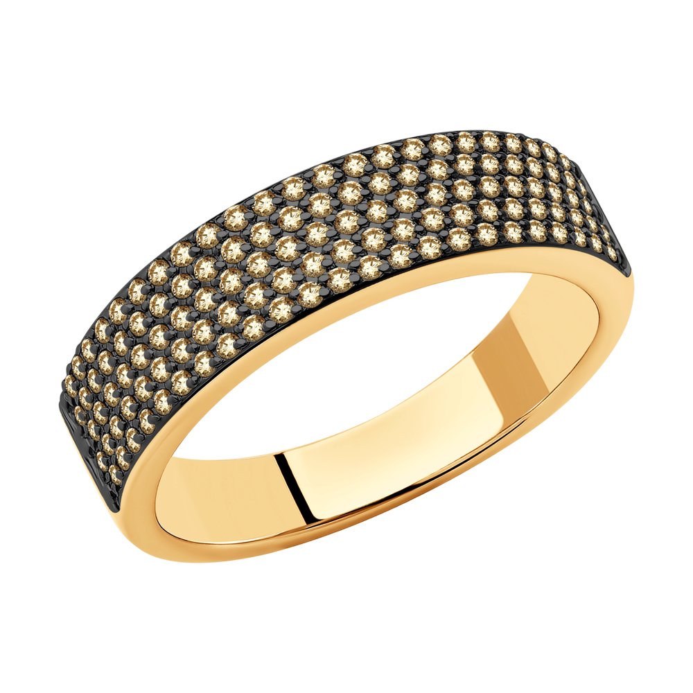 Блистательное кольцо из красного золота 585 пробы украшено дорожками искрящихся завораживающих бриллиантов. Неотразимый блеск коньячных бриллиантов не останется незамеченным. Кольцо из эксклюзивной коллекции украшений выполнено в стильном универсальном дизайне - для ценителей красоты драгоценных камней и традиций мастерства. Украшение станет отличным дополнением к вашему неповторимому образу. Приобретайте кольцо по выгодным ценам в магазинах Мир Золота.