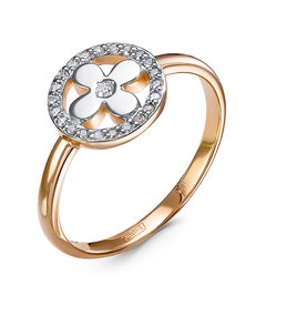 Кольцо из красного золота с бриллиантами и декором в форме клевера