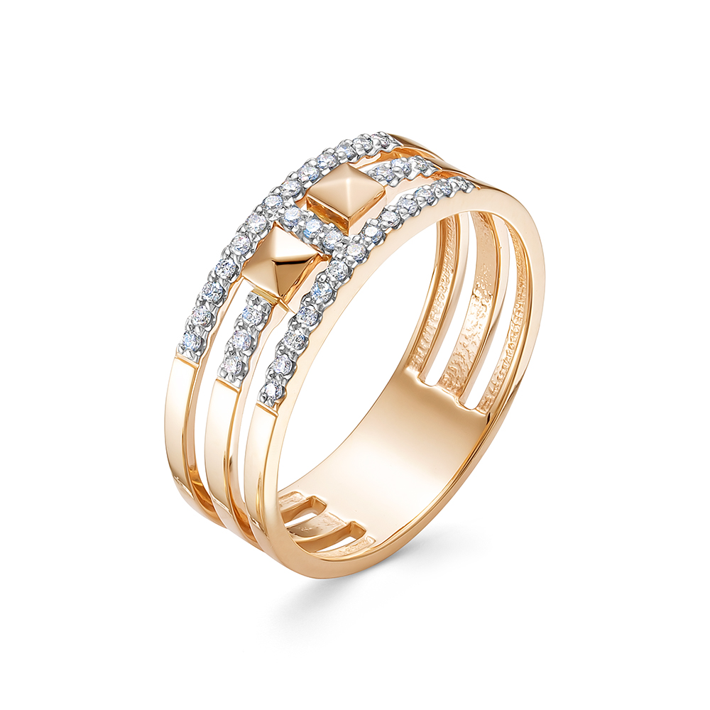 Великолепное кольцо стильного дизайна с бриллиантами выполнено из красного золота 585 пробы. Широкое кольцо с сияющими выразительными дорожками из драгоценных камней превосходно дополнит современные образы владелицы. Чистый прозрачный блеск бриллиантов приковывает внимание и никого не оставит равнодушным. Приобретайте элегантное украшение по выгодным ценам в магазинах Мир Золота.