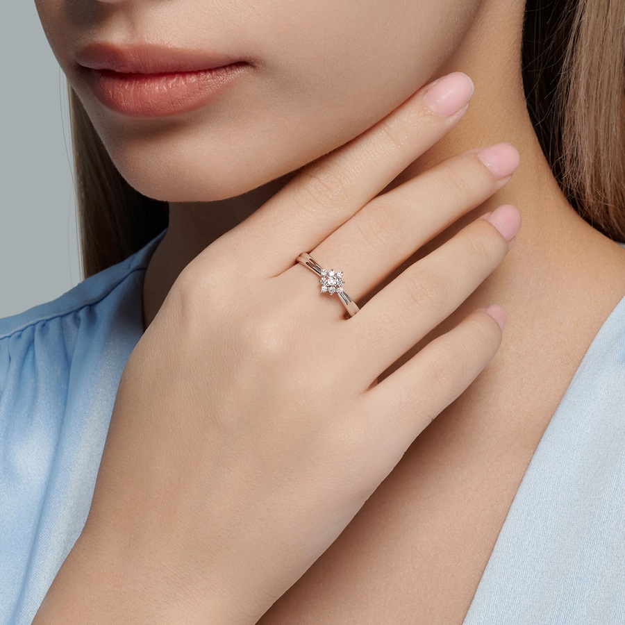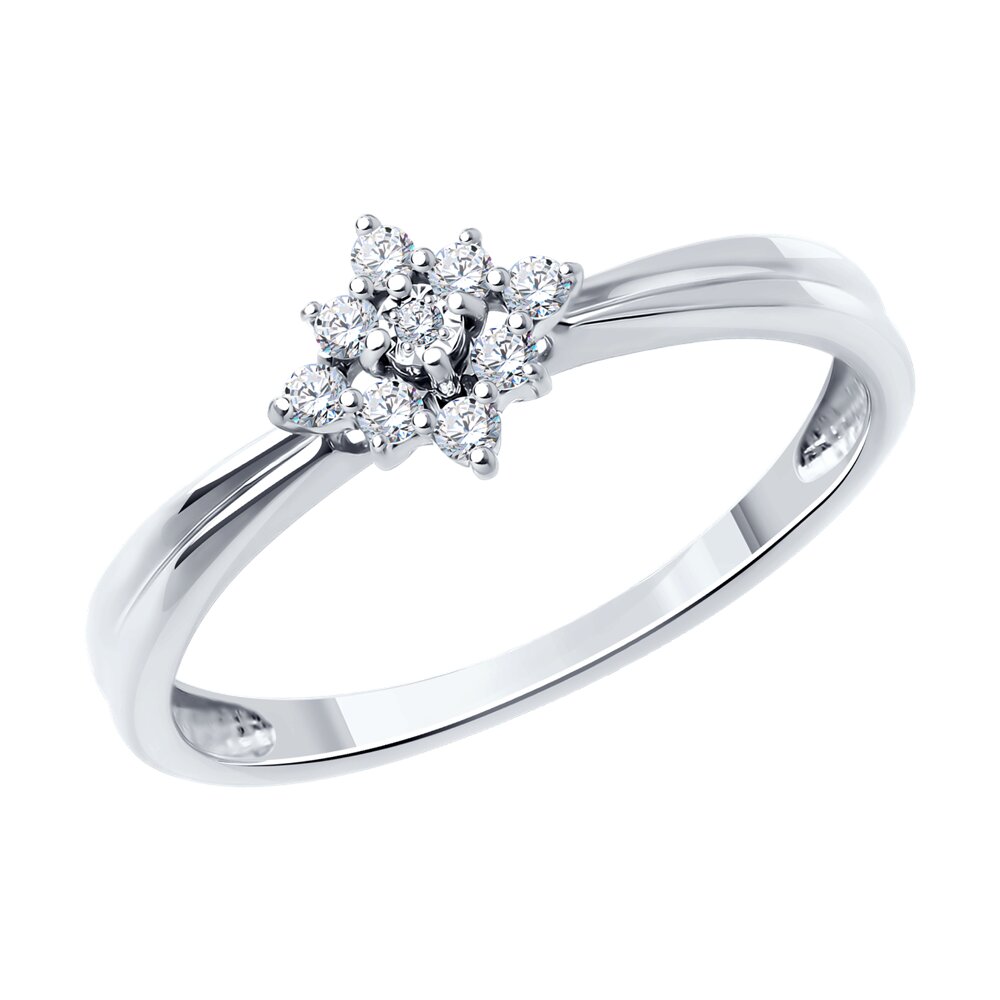 Кольцо из белого золота 585 пробы с изумительным блеском природных бриллиантов не оставит женщину равнодушной. Кристальное сияние драгоценных камней на фоне белого золота приковывает взгляд, и подчеркнет совершенство и изысканность образа владелицы. Приобретайте ювелирное украшение для своей коллекции или в подарок по привлекательной цене в магазинах Мир Золота.