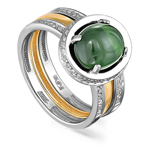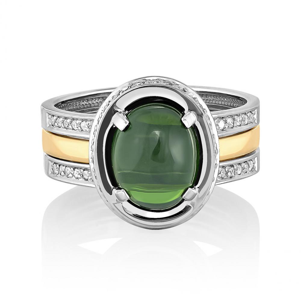 Кольцо из комбинированного золота с турмалином и бриллиантами