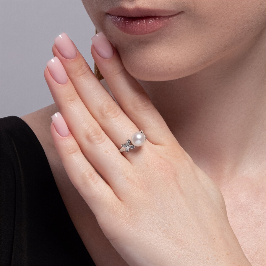 —Кольцо из белого золота с жемчугом и бриллиантами