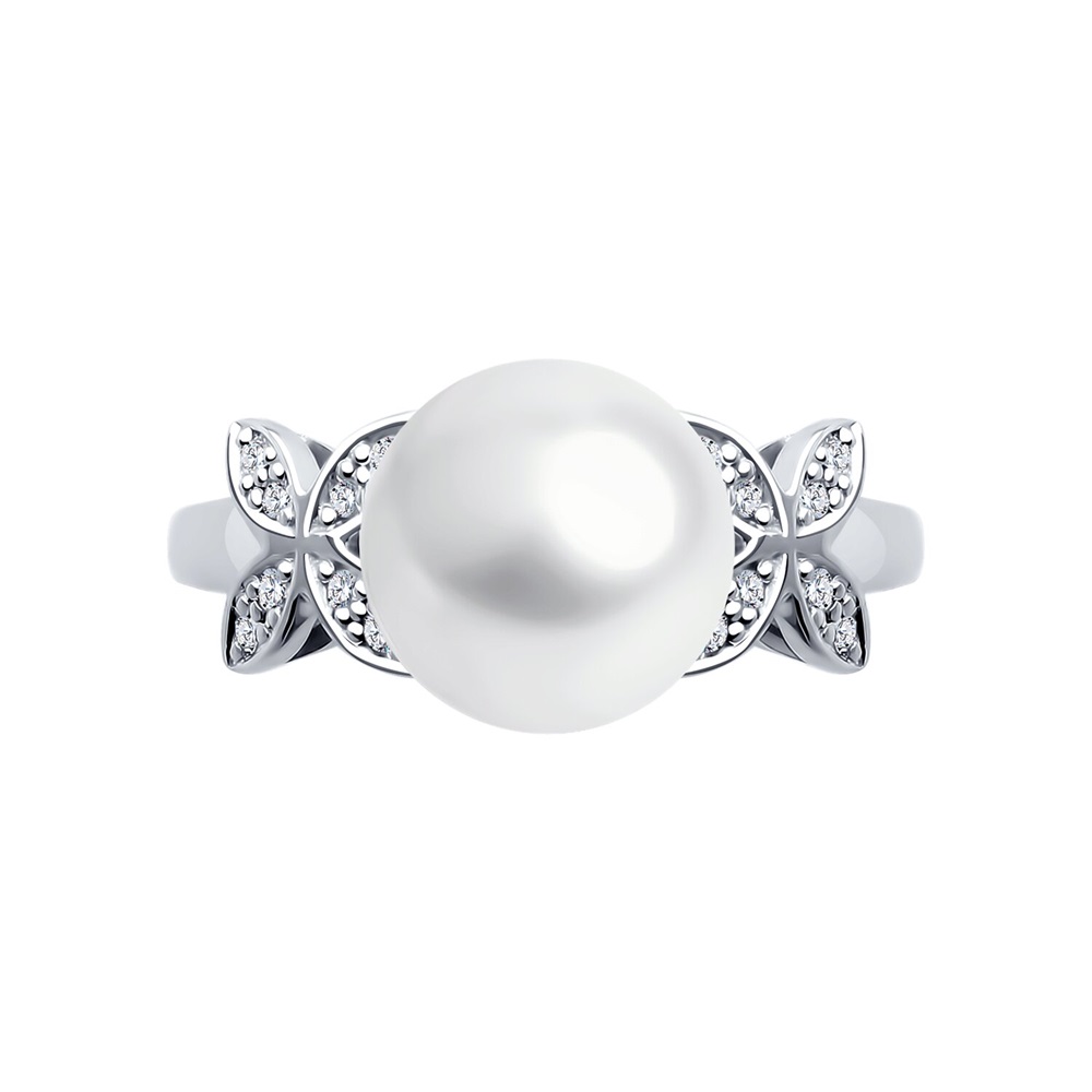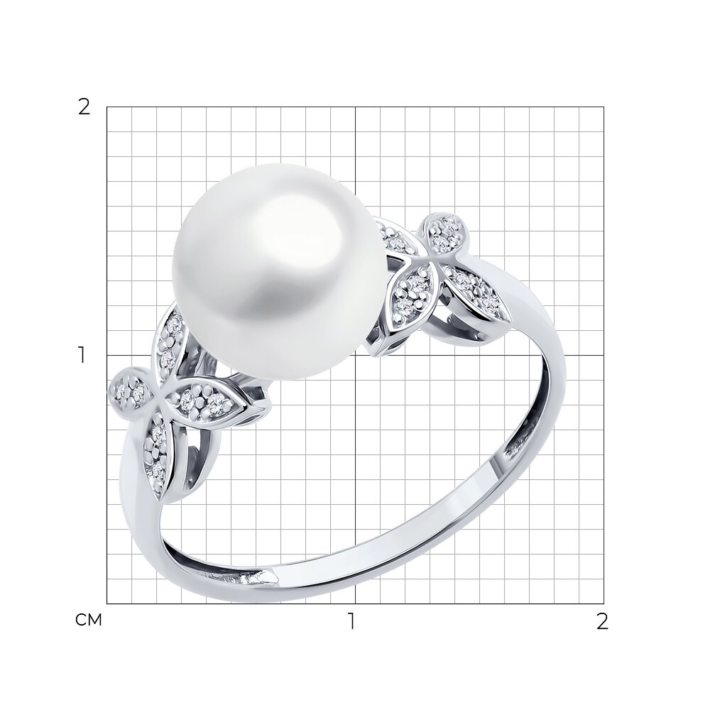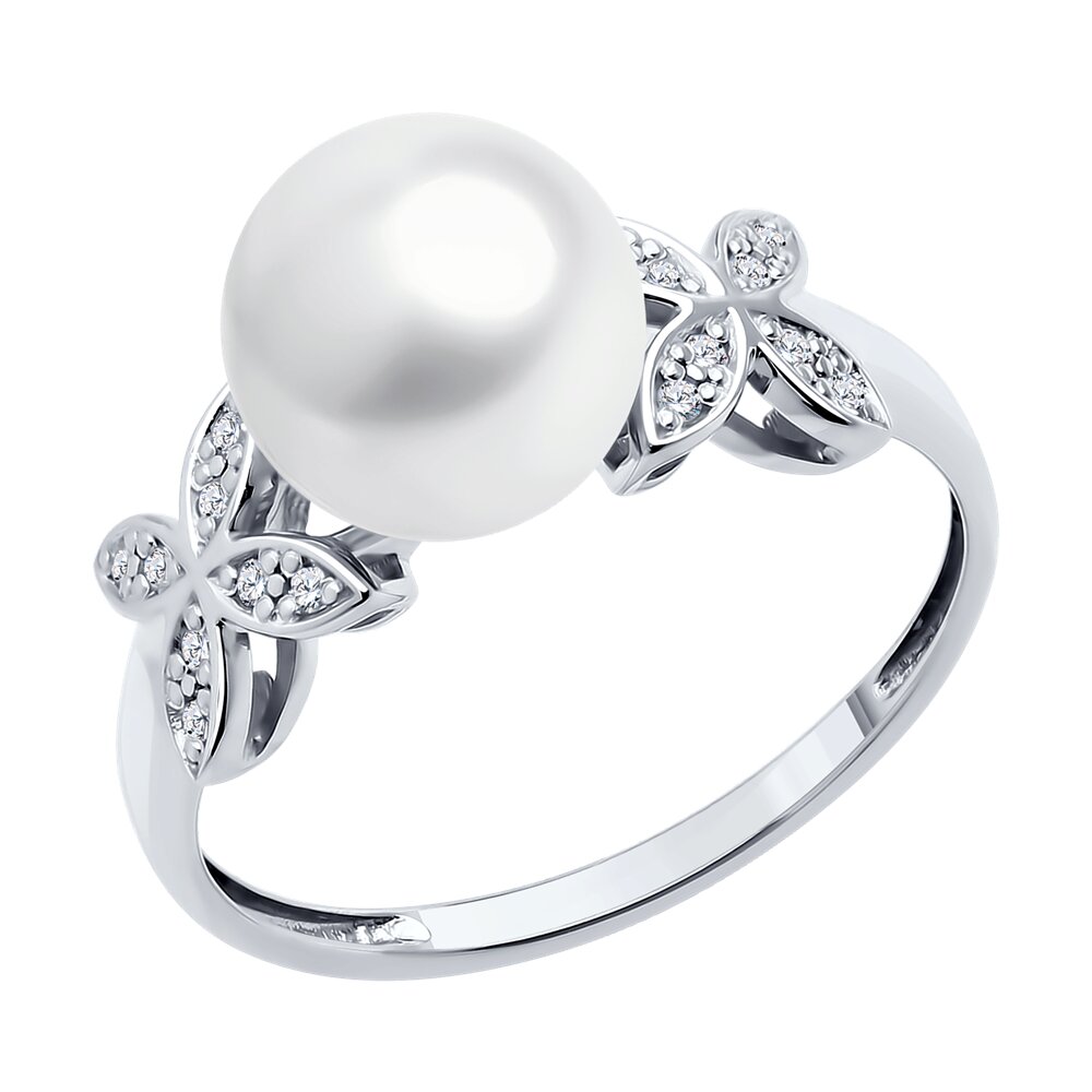 Кольцо из белого золота с жемчугом и бриллиантами
