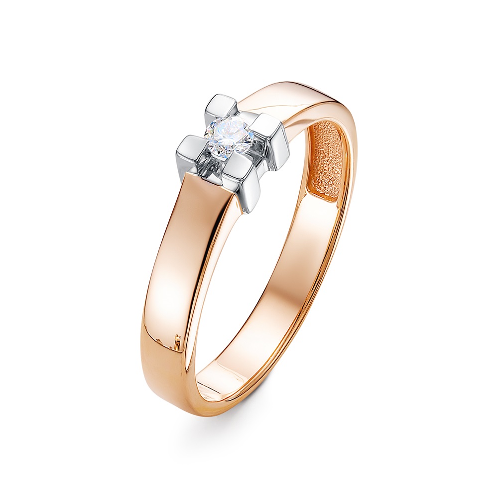 Утонченное кольцо из красного золота 585 пробы в классическом стиле с сияющим бриллиантом и вставкой из белого золота. Лаконичный нежный дизайн кольца подойдет для прекрасного подарка, а также дополнит повседневный образ, сделав его более элегантным и очаровательным. Приобретайте кольцо по выгодным ценам в магазинах Мир Золота.