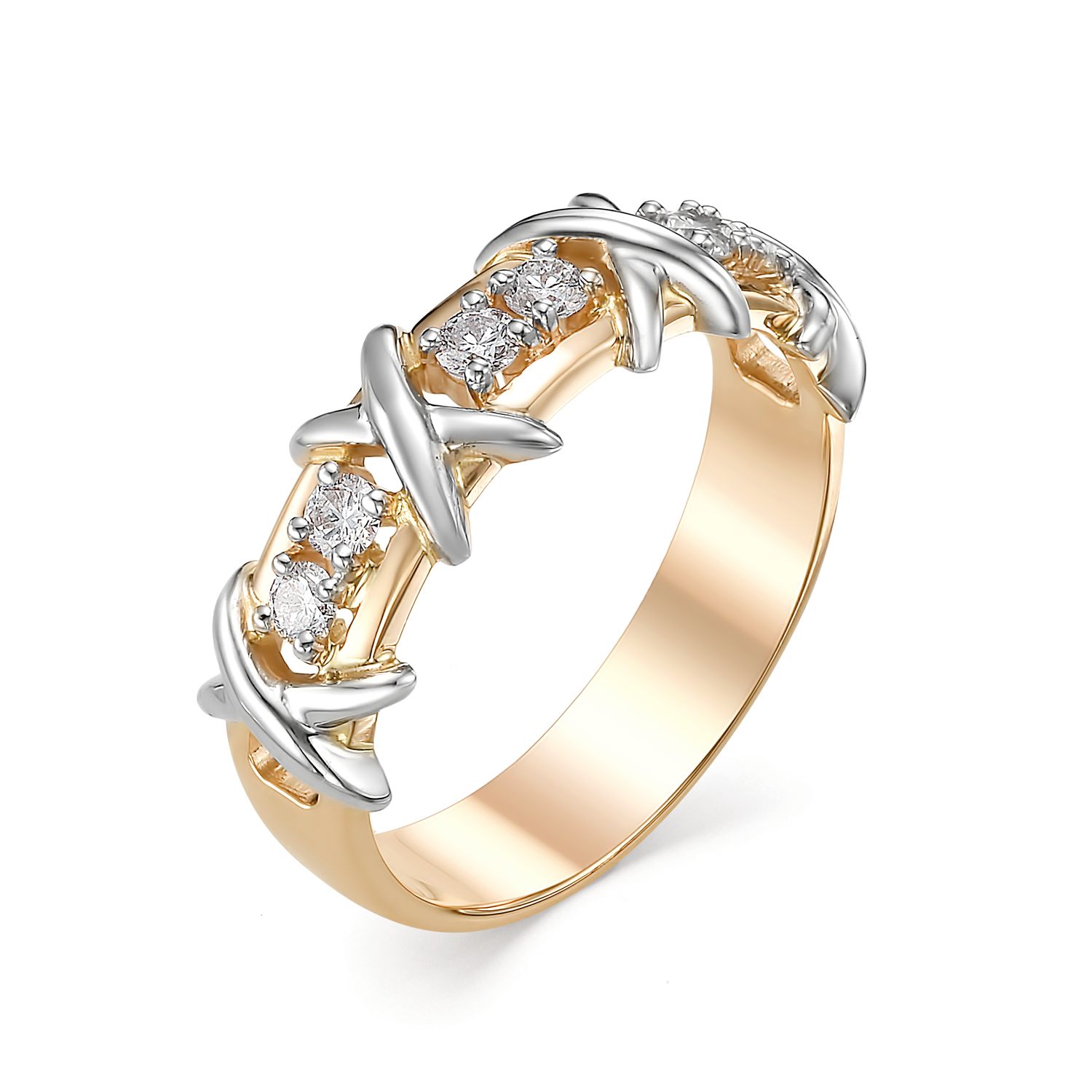 Изумительное кольцо из красного и белого золота 585 пробы с бриллиантами в оригинальном утонченном дизайне. Декоративная часть кольца украшена изящными элементами из белого золота и сверкающими бриллиантами. Очаровательное кольцо создает потрясающий эффект великолепия, сияния и блеска. Очень красивое и стильное украшение сделает ваш образ идеальным. Приобретайте кольцо по выгодным ценам в магазинах Мир Золота.