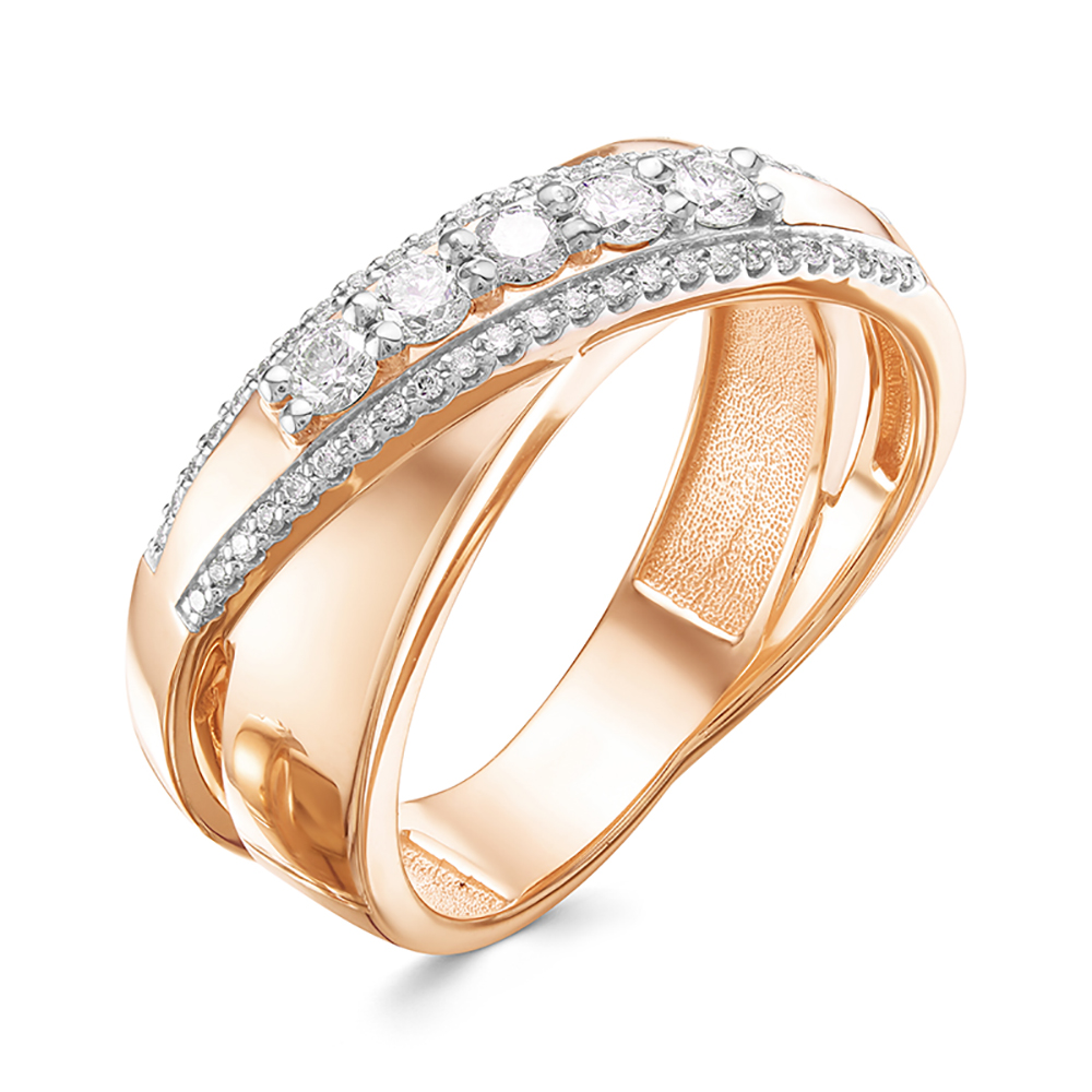 Роскошное кольцо из красного золота 585 пробы декорировано 53 бриллиантами. Кольцо сложного оригинального дизайна, украшенное дорожками искрящихся бриллиантов, покоряет своим необыкновенным очарованием и изысканностью сияния. Украшение позволит создать по-настоящему благородный и элегантный образ. Кольцо идеально подойдет к вечернему и яркому образу. Приобретайте великолепное кольцо выгодно в магазинах Мир Золота.