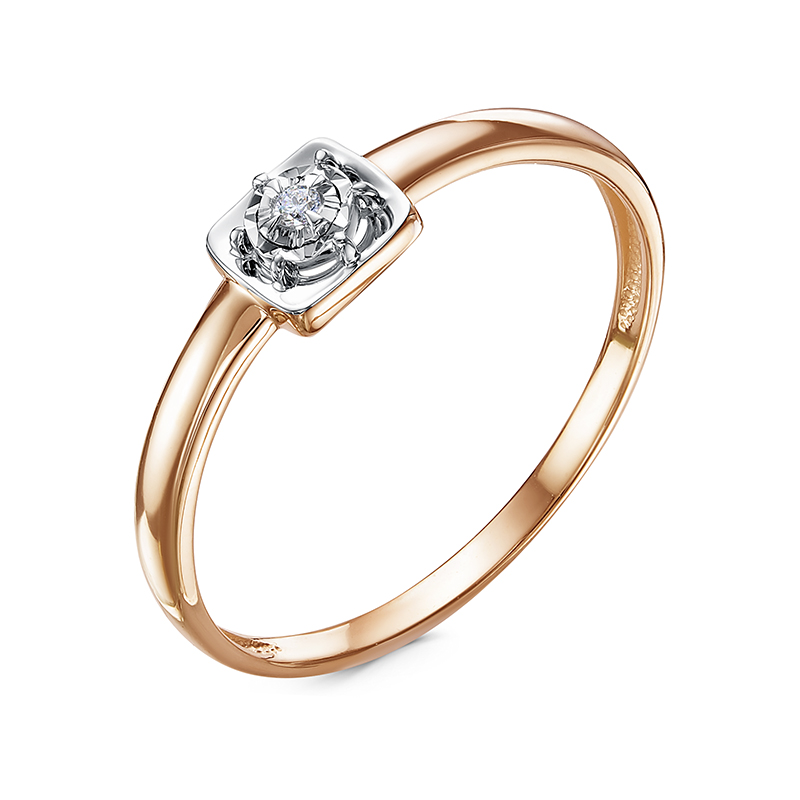 Изящное кольцо с натуральным бриллиантом выполнено из красного золота 585 пробы. Объемная вставка из белого золота с алмазной гранью визуально увеличивает размер бриллианта и создает эффект дополнительного сияния. Утонченное украшение идеально подойдет под любой повседневный стиль, и станет приятным подарком, подчеркивающим красоту и очарование владелицы. Приобретайте кольцо по привлекательной цене в магазинах Мир Золота.