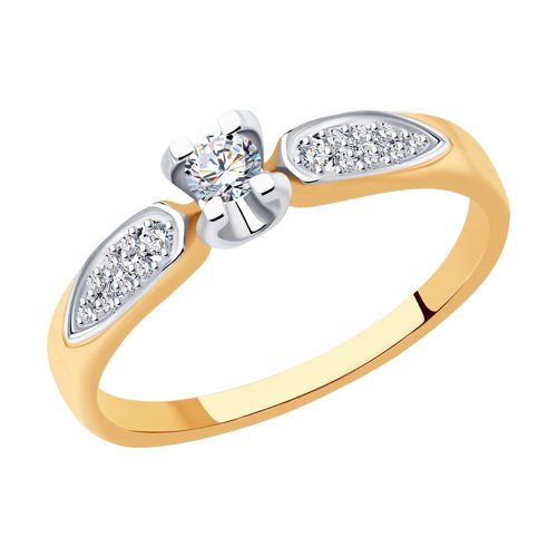 Изысканное кольцо из красного золота 585 пробы украшено 17 сверкающими бриллиантами. Сияние драгоценных бриллиантов подчеркнуто вставками из белого золота. Украшение с оригинальным дизайном подходит для разных образов, являясь признаком стиля и элегантности. Приобретайте очаровательное кольцо по выгодным ценам в магазинах Мир Золота.