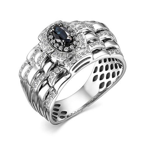 Роскошное кольцо изысканного ювелирного дизайна из белого золота 585 пробы с натуральным сапфиром и бриллиантами непременно привлечет внимание окружающих. Объемное украшение с восхитительным блеском драгоценных камней покоряет своей красотой и дизайном, и вдохновляет на создание неповторимого образа для вечернего выхода или торжественного мероприятия. Приобретайте кольцо в подарок по привлекательной цене в магазинах Мир Золота.