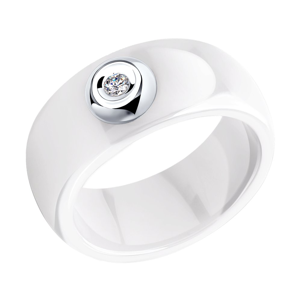 Кольцо из белой керамики с белым золотом и бриллиантом