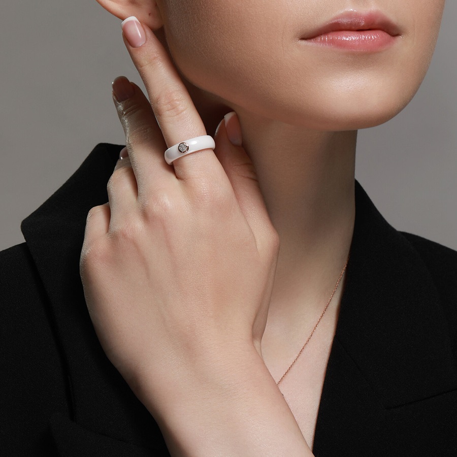 —Кольцо из белой керамики с белым золотом и бриллиантом