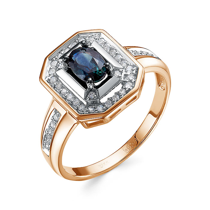 Кольцо из красного золота с сапфиром и бриллиантами