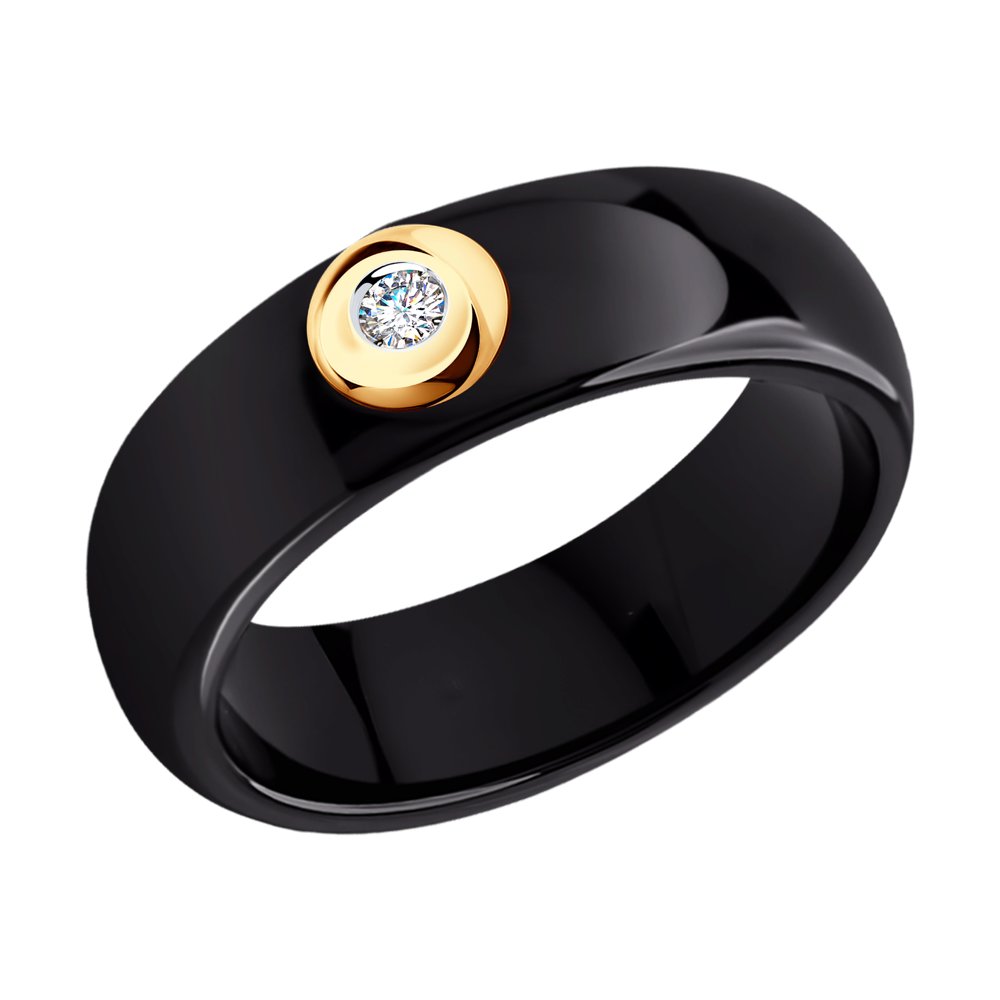 —Кольцо из черной керамики с красным золотом и бриллиантом