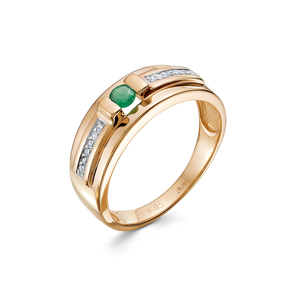—Кольцо из красного золота с изумрудом и бриллиантами