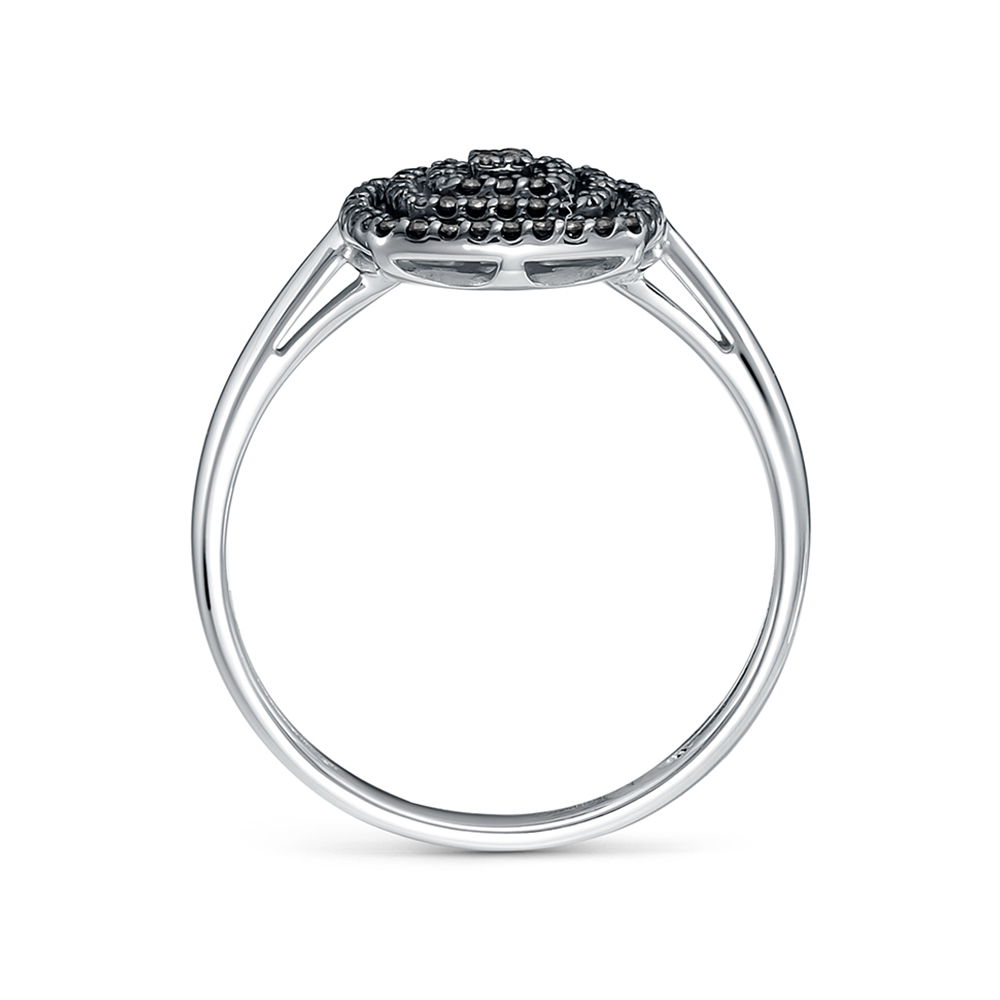 Кольцо из белого золота 585 пробы с эффектным декором из дорожек черных бриллиантов подчеркнет изысканный вкус и индивидуальность владелицы. Завораживающий блеск драгоценных камней в сочетании с холодным оттенком золота приковывает взгляд, и делает украшение ярким акцентом современного образа. Приобретайте украшение для себя или в подарок по привлекательной цене в магазинах Мир Золота.